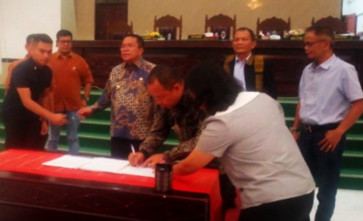 Ketua DPRD Pematangsiantar Timbul Lingga saat menandatangani kesepakatan akan Perda APBD Tahun 2026
