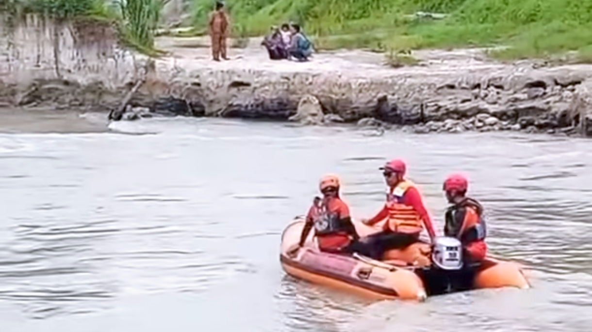 Pencarian dilakukan melalui penyisiran menggunakan perahu LCR menyusuri aliran sungai, disertai pemantauan darat di titik-titik yang dianggap rawan.