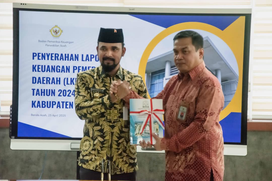 Banda Aceh, Sinata.id – Pemkab Aceh Timur resmi menyerahkan Laporan Keuangan Pemerintah Daerah (LKPD) Unaudited Tahun Anggaran 2024 kepada Badan Pemeriksa Keuangan (BPK) RI Perwakilan Provinsi Aceh, pada Jumat tanggal 25 April 2025 di Banda Aceh.