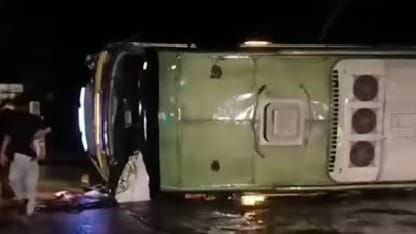 Kasi Humas Polres Labusel, AKP Sujono, menjelaskan kecelakaan diduga akibat sopir mengantuk. “Bus oleng setelah ban kiri turun ke beram jalan, lalu menabrak empat warung dan dua sepeda motor sebelum terguling di badan jalan,” ujarnya.