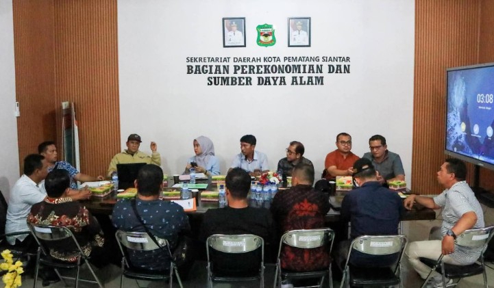 Rapat persiapan pengembalian pedagang ke lokasi eks Gedung IV Pasar Horas dilakukan di Ruang Bagian Perekonomian dan Sumber Daya Alam (SDA) Setdako Pematangsiantar, Jumat (05/12/2025) sore.