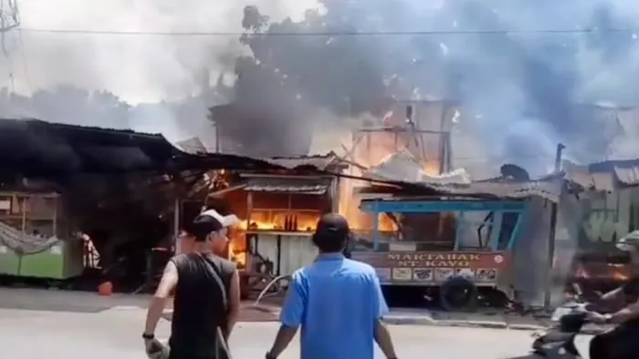 Senin (13/10/2025) siang, api tiba-tiba berkobar hebat dan melahap deretan kios pedagang kaki lima di persimpangan Jalan Mekatani. Sedikitnya sepuluh kios terbakar habis, menyisakan puing hitam dan rangka besi dari dua sepeda motor yang ikut hangus di depan lokasi.