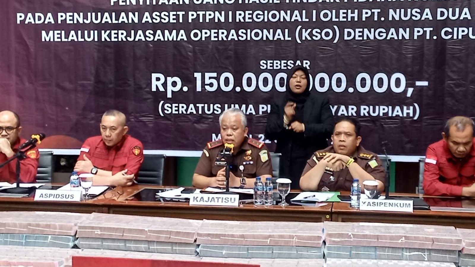 Medan, Sinata.id – Kejaksaan Tinggi Sumatera Utara (Kejati Sumut) menyita uang sebesar Rp150 miliar terkait dugaan korupsi dalam jual beli aset milik PTPN I Regional 1 yang bekerja sama dengan PT Ciputra Land melalui sistem kerja sama operasional.