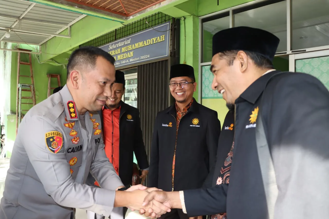 Didampingi Kasat Intelkam Kompol Lengkap Siregar dan Kapolsek Medan Tembung AKP Ras Maju Tarigan, kedatangan Kapolrestabes disambut hangat oleh Ketua PD Muhammadiyah Medan, Ustadz Maulana Siregar, beserta para pengurus majelis, pimpinan organisasi otonom seperti Aisyiyah, Nasyiatul Aisyiyah, Pemuda Muhammadiyah, hingga kepala sekolah Muhammadiyah se-Kota Medan.