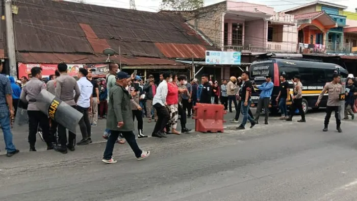 Suasana di halaman Polres Dairi mendadak berubah tegang. Dari kejauhan, terdengar riuh suara kendaraan pickup yang melaju cepat membawa sejumlah orang. Tak lama kemudian, batu, botol, bahkan cabai giling melayang deras ke arah aparat yang berjaga di depan markas kepolisian.