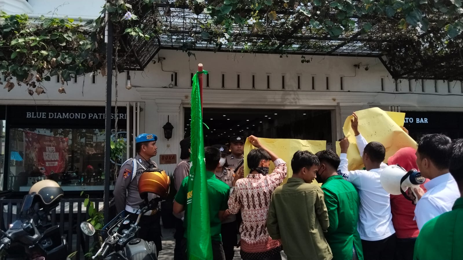 Massa menuntut Walikota mencabut izin, merobohkan bangunan, dan memeriksa dugaan kolusi antara Dinas Lingkungan Hidup (DLH) dengan pengusaha cafe.