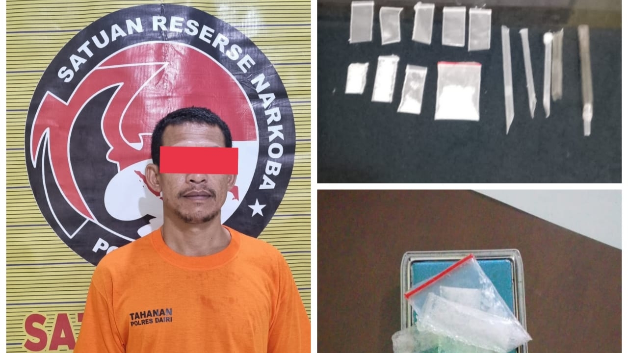 Dairi, Sinata.id – Seorang pria berinisial HDLG (43) dibekuk Satresnarkoba Polres Dairi saat sedang berada di sebuah rumah makan di Jalan Sidikalang–Medan, Sitinjo, Senin (8/12/2025).