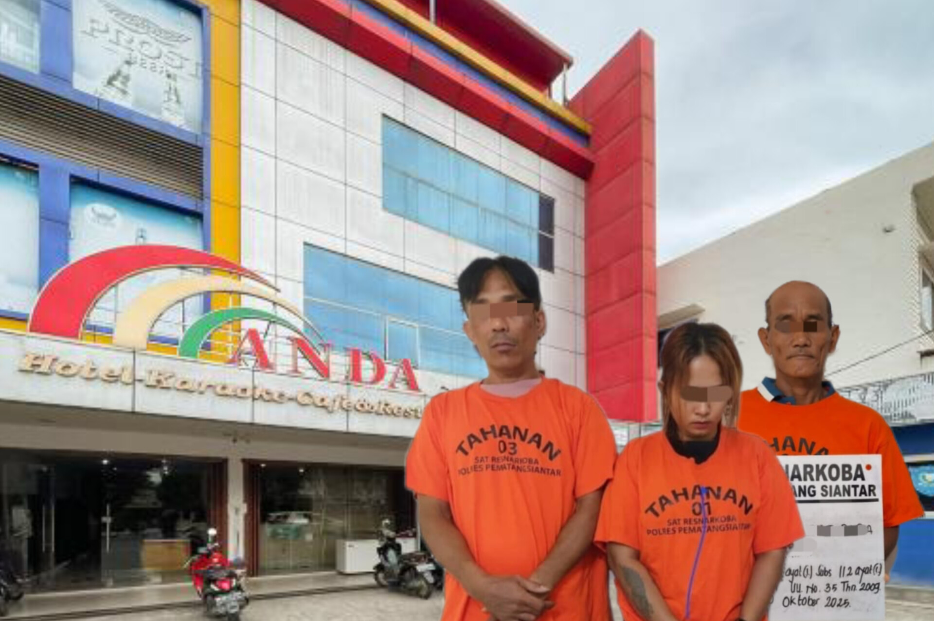 Tiga orang tersangka, termasuk seorang perempuan, ditangkap dalam operasi yang berlangsung di kawasan Karaoke Anda, Jalan Ahmad Yani, Kota Pematangsiantar, pada Jumat (10/10/2025) dini hari.