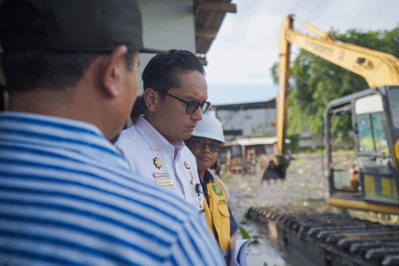 Medan, Sinata.id – Wali Kota Medan Rico Tri Putra Bayu Waas turun langsung meninjau normalisasi parit Gonggong yang berlokasi dijalan Kapten Moh.Ilyas, Kec. Medan Labuhan. Diharapkan normalisasi parit alam sepanjang 1.250 meter tersebut dapat mengatasi permasalahan genangan air di seputaran Simpang Kantor, Selasa (23/9/2025).