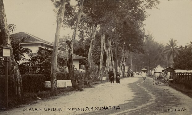 Menurut Volker pada tahun 1860, Medan masih merupakan hutan rimba, dan di sana sini terutama di muara-muara sungai diselingi pemukiman-pemukiman penduduk yang berasal dari Karo dan semenanjung Malaya.