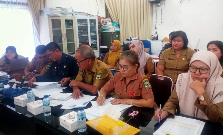 Kadisnaker Robert Samosir (tiga dari kiri) didampingi Sekretaris Hennawati Saragih (dua dari kanan) saat raker dengan Komisi 1 DPRD