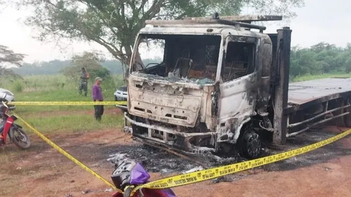 Sinata.id – Senin pagi (13/10/2025), warga Tanjung Batu dibuat tercengang saat menemukan truk tronton terbakar. Di dalamnya, seorang sopir ditemukan tewas dalam kondisi hangus terbakar total, identitasnya sementara diketahui sebagai Asril Wahyudi, warga Solok Selatan.