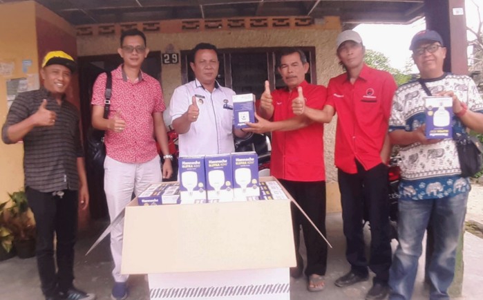Bantuan bola lampu dari Abraham Tobing diserahkan Pengurus Ranting PDI Perjuangan Kelurahan Pardomuan, kepada Lurah Pardomuan, Hendri Lubis SH.