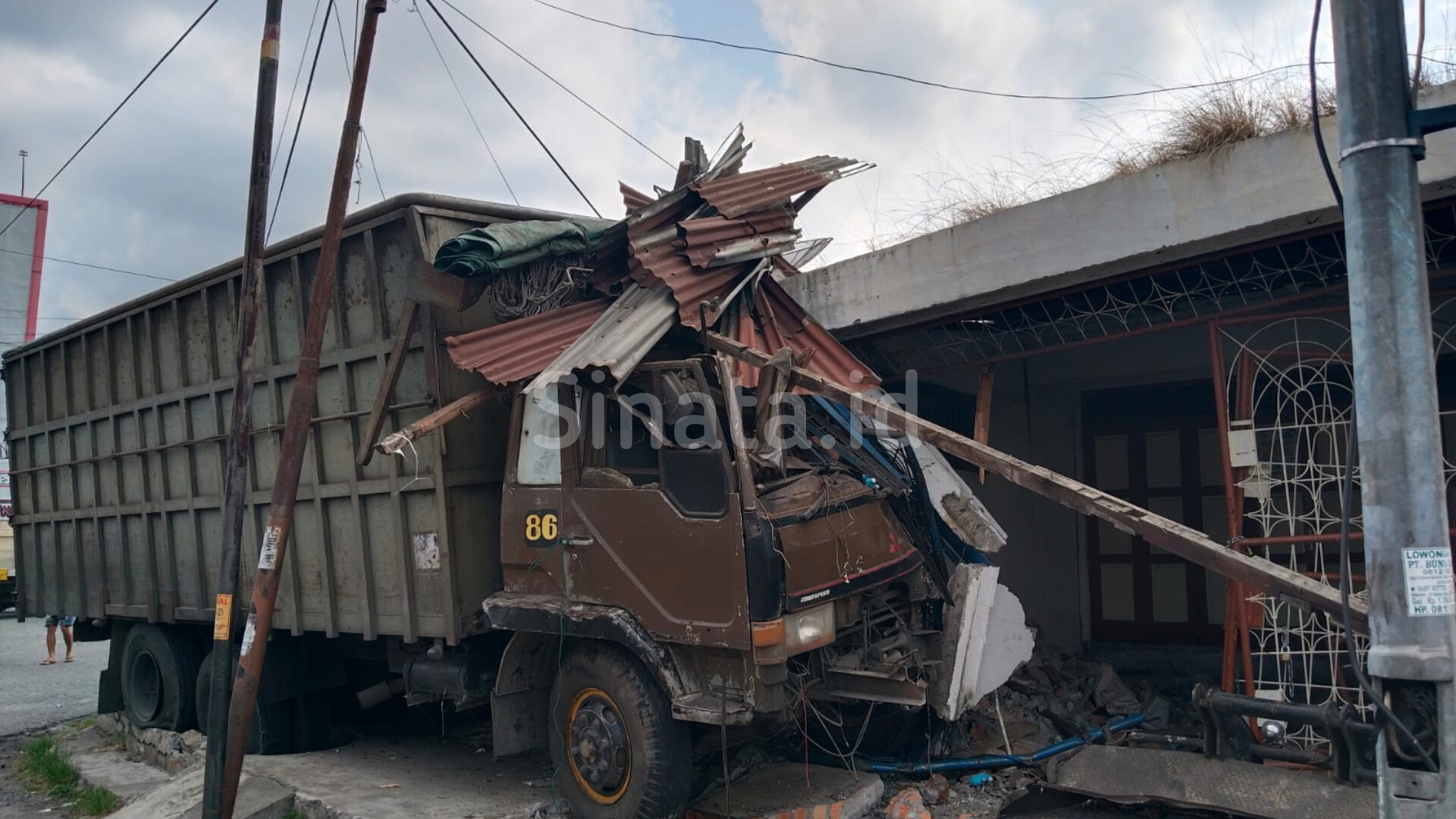 Truk diduga alami rem blong hantam rumah warga. (Foto: sinata/Hendri)